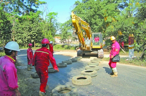 打造“綠色工程、和諧工程”是管道局中緬管道項(xiàng)目部的施工目標(biāo)之一。這個(gè)項(xiàng)目部聯(lián)系當(dāng)?shù)叵嚓P(guān)部門,將河流穿越時(shí)產(chǎn)生的泥漿曬干回收用作地基土,把現(xiàn)場棄渣裝車鋪墊公路,并使管道施工作業(yè)帶清理寬度嚴(yán)格控制在28米以內(nèi)。員工在開挖管溝時(shí)將生熟土分開堆放,分類收集營地和現(xiàn)場垃圾,還和當(dāng)?shù)叵嚓P(guān)部門簽署垃圾處理、生活污水排放的協(xié)議。