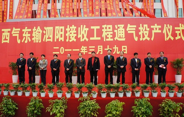 宿遷市原副市長趙深,縣委書記李榮錦,縣人大常委會原主任何平,縣政協(xié)主席陳富勝等四套班子領(lǐng)導,西氣東輸管道銷售公司總經(jīng)理助理李世泉等出席西氣東輸泗陽接收工程投產(chǎn)儀式